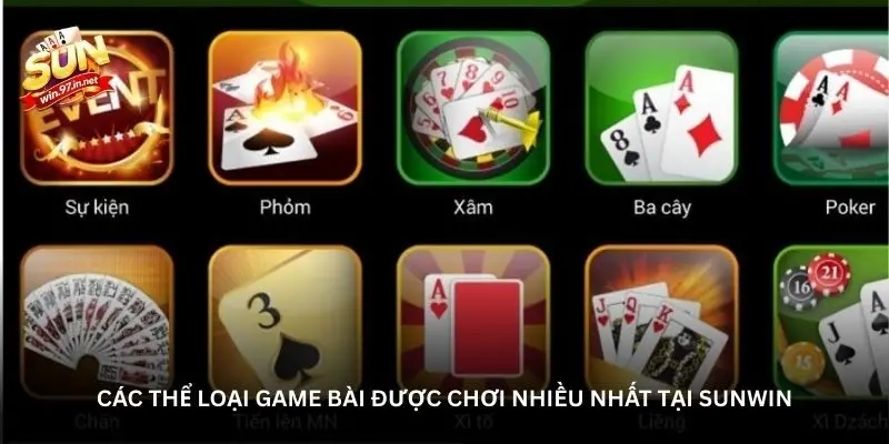 Các thể loại game bài được chơi nhiều nhất tại Sunwin